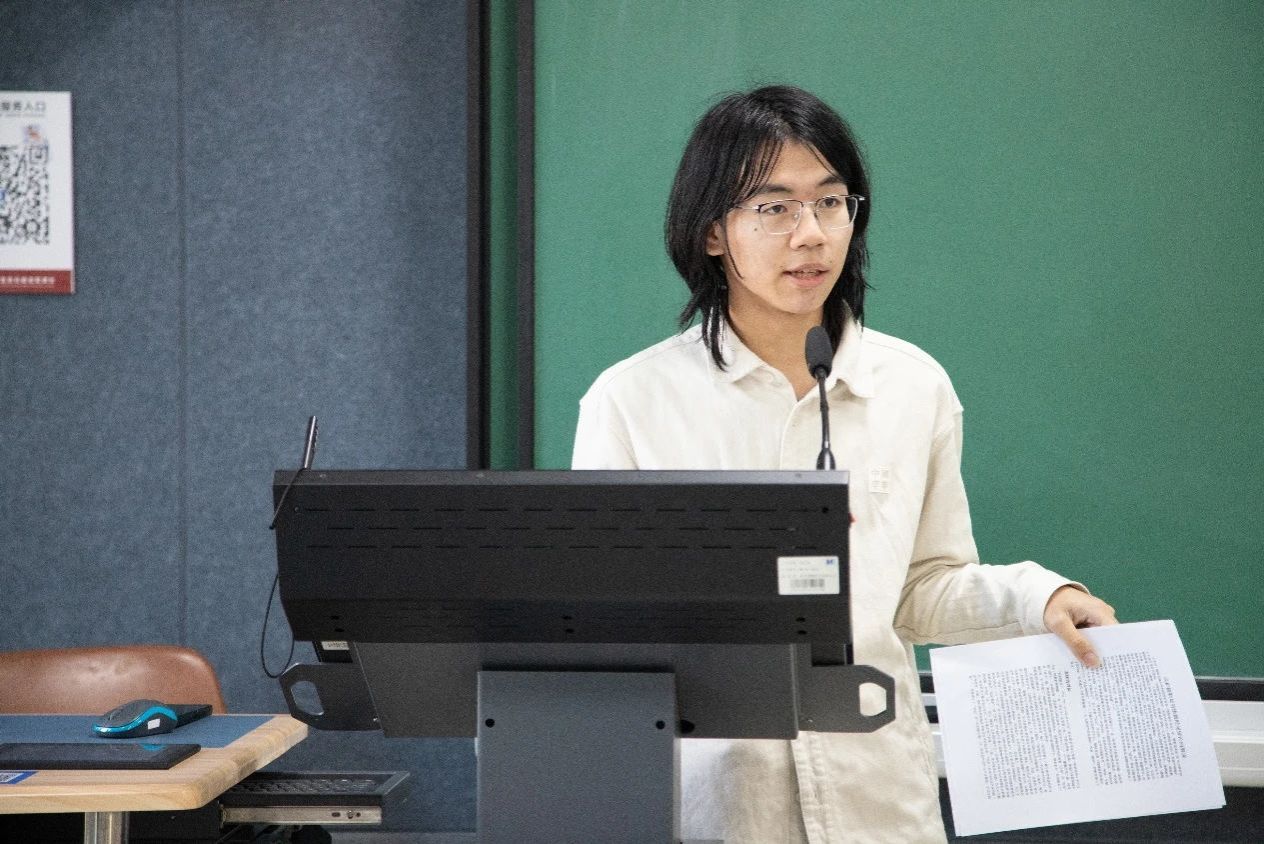 沙龙根据论文的不同内容,设置了三场主题发言,分别由2021级王璐同学、2022级侯方笛同学和2023级李秉哲同学进行主题报告。 首场分享由王璐同学担纲,她以《大学》中“修齐治平”的内涵维度与责任主体为题,深入剖析了儒家思想的现代价值与实践意义,为听众呈现了一场思想的盛宴。