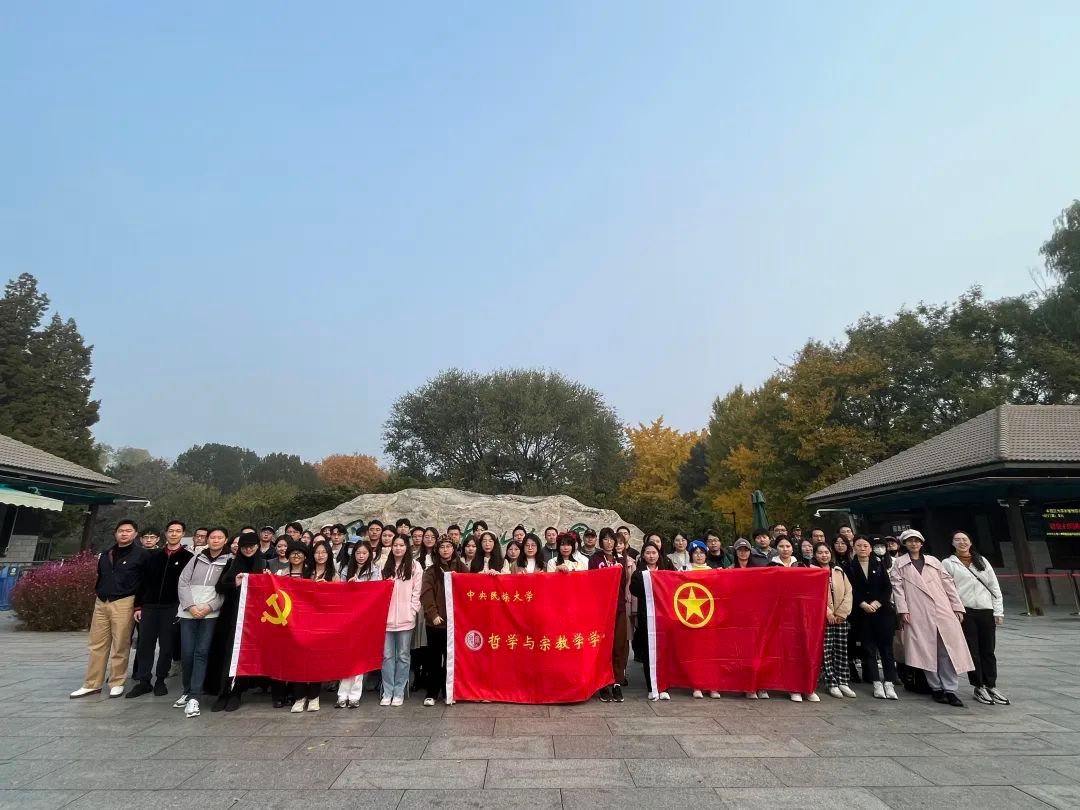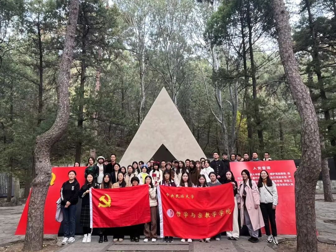 宗教学系师生联合党支部、哲学专业博士生党支部、丰台校区学生党支部于11月2日联合组织开展了“缅怀先烈·坚定信念”主题党日活动。此次活动带领支部成员和入党积极分子近八十人,前往国家植物园樱桃沟景区的“一二·九”运动纪念地,通过重温历史、缅怀革命先烈的方式,进一步坚定新时代青年党员的理想信念。